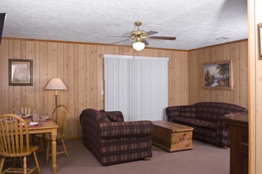Each cabin is equipped with central heat and air, two bedrooms, and one